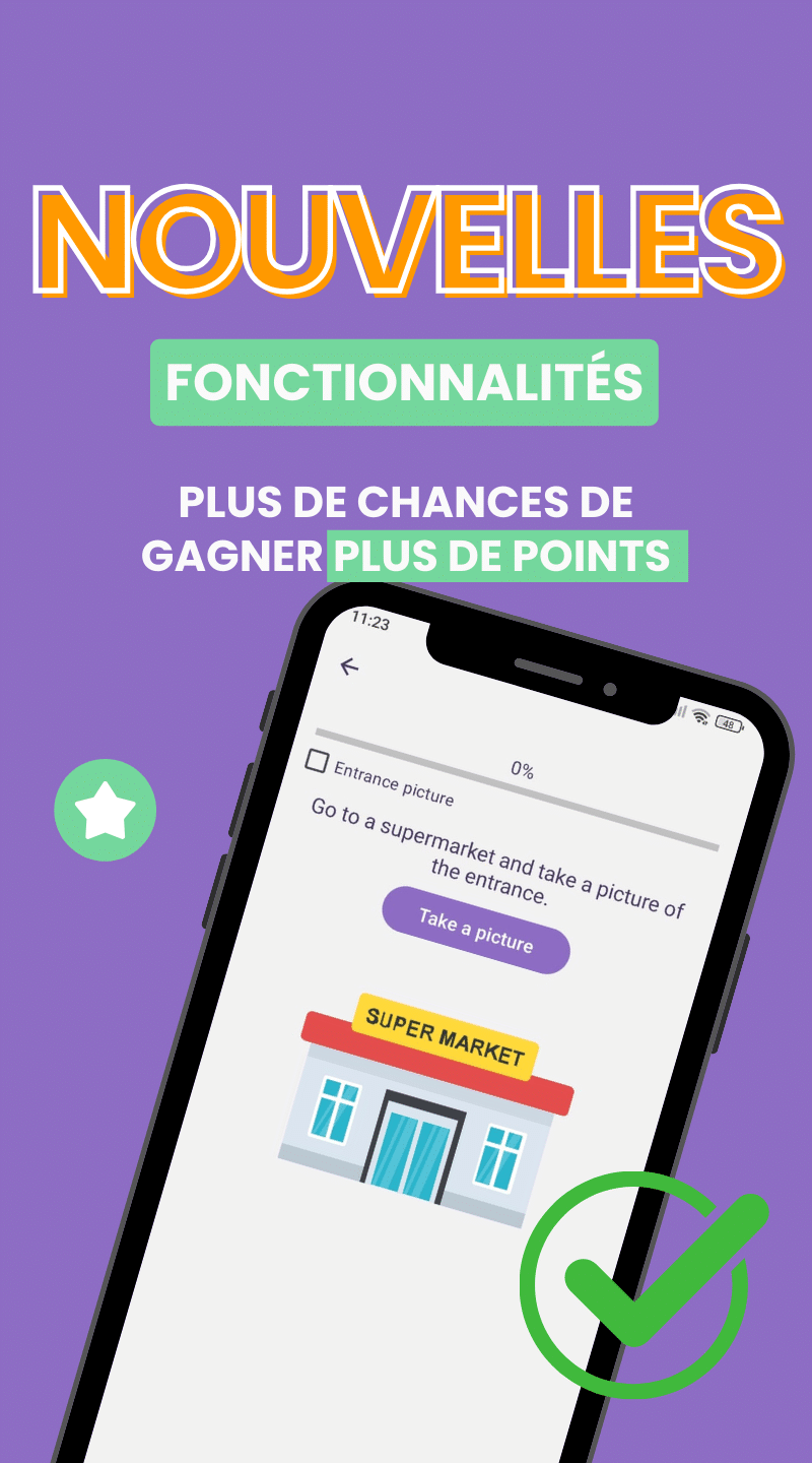 Visitez les magasins, scannez des produits spécifiques et prenez des photos pour gagner des points supplémentaires.